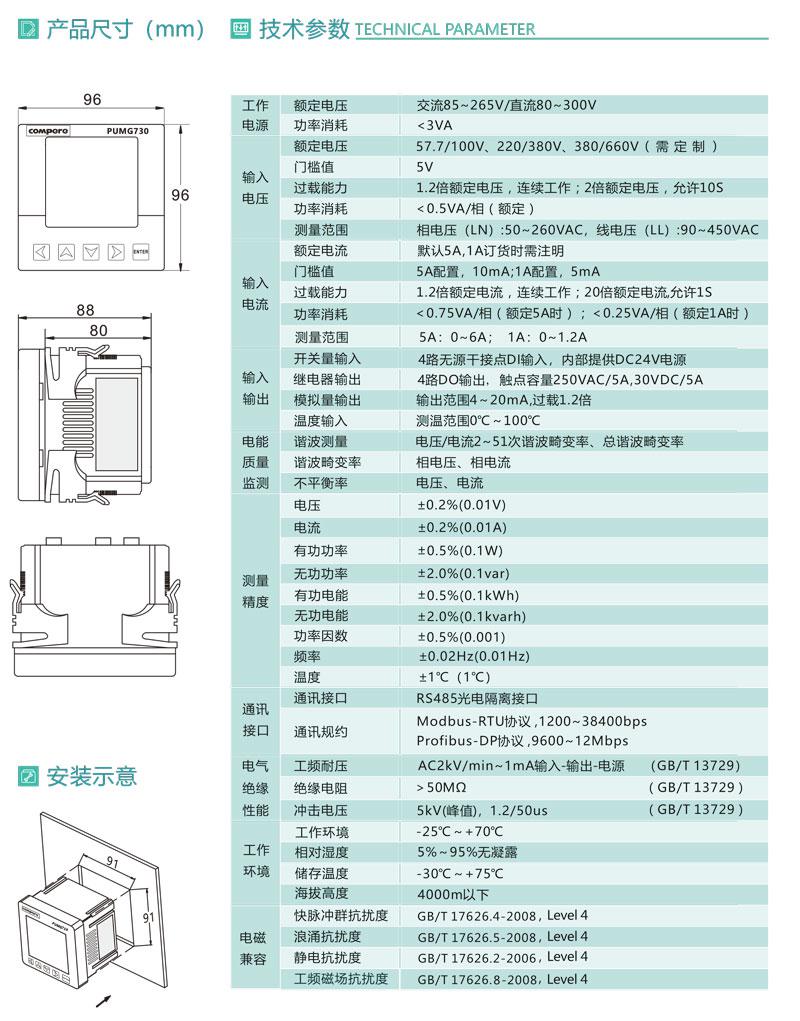 PUMG730系列多功能儀表功能