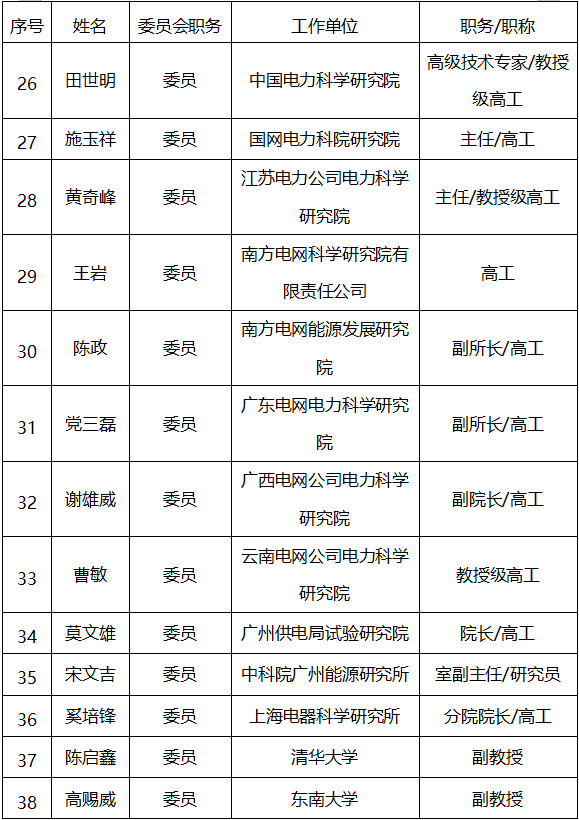 員兼秘書長,楊迪、閆華光任委員兼副秘書長,秘書處由南方電網(wǎng)科學(xué)研究院有限責(zé)任公司承擔(dān)。
