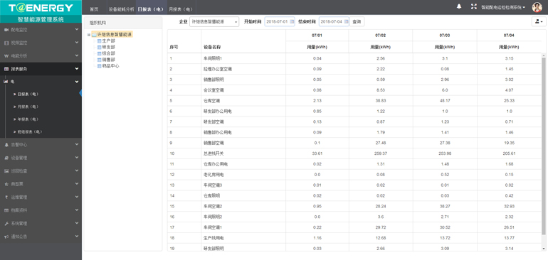 能耗分析包括企業(yè)用能分析、部門綜合能耗、設(shè)備用能分析和電量指標(biāo)綜合分析這四類,將企業(yè)中各部門及各監(jiān)測(cè)點(diǎn)實(shí)際用能情況,通過不同的分析方式展現(xiàn)出來。