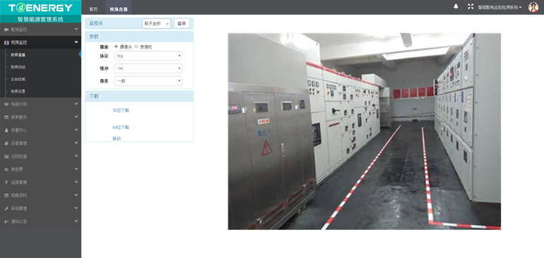視頻監(jiān)控顯示站房的監(jiān)控視頻界面,帶云臺(tái)功能??稍O(shè)定定期巡視、事件聯(lián)動(dòng)巡視(異物入侵、事件聯(lián)動(dòng))。