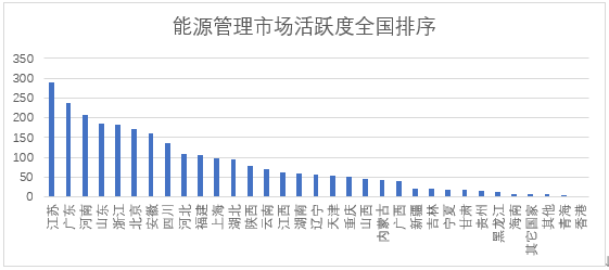 根據統(tǒng)計數據整體來看,經濟較為發(fā)達的東部沿海地區(qū)(江浙廣)的市場活躍度相對較高,西北地區(qū)(寧夏、甘肅)和東北地區(qū)(黑龍江、吉林)等地區(qū)市場活躍度相對偏弱。能源管理作為節(jié)能降耗的重要數據統(tǒng)計分析工具,與地區(qū)經濟發(fā)展情況基本趨同也是必然。