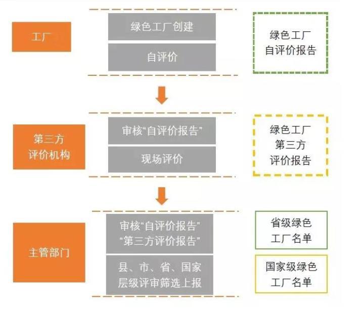 綠色工廠分為國家級、省級和市級三個層次,國家級申報評選全流程是由工信部主管,由各級工信部門逐級上報,最終工信部進行評定。