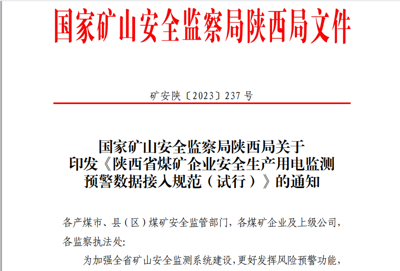 陜西省煤礦企業(yè)安全生產(chǎn)用電監(jiān)測預(yù)警數(shù)據(jù)接入通知