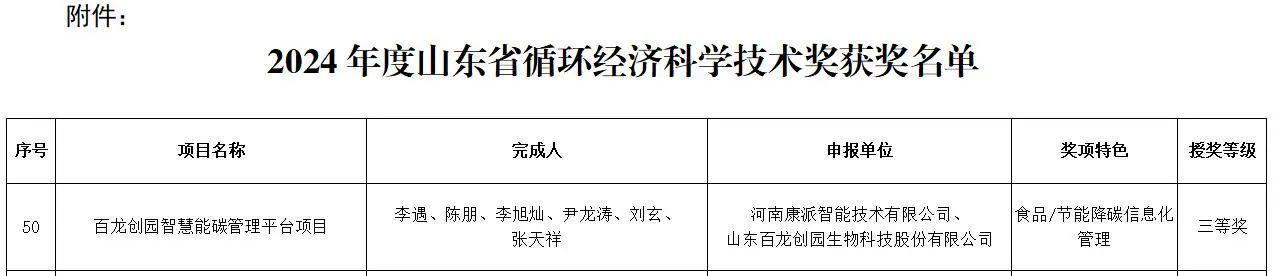 康派智能榮獲“2024年度山東省循環(huán)經(jīng)濟科學技術獎”三等獎