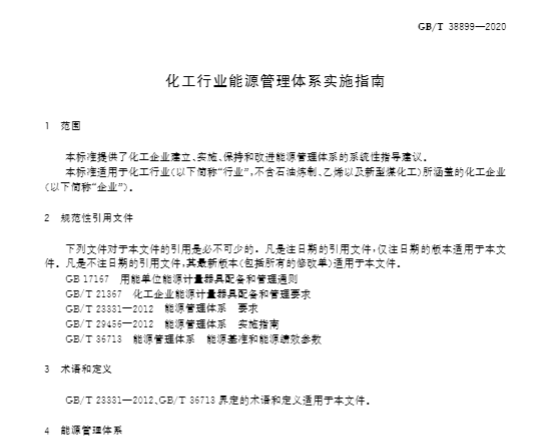 本標(biāo)準(zhǔn)依據(jù)GB/T 23331-2012和GB/T 29455-2012,結(jié)合化工企業(yè)特點(diǎn),指導(dǎo)化工企業(yè)在開展能源管理時(shí)充分考慮不同企業(yè)能源消耗的差異性以及同一企業(yè)不同條件下能耗的變化特征。