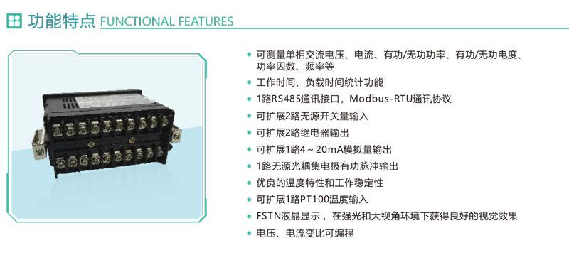 1.可測(cè)量單相交流電壓、電流、有功/無(wú)功功率、有功/無(wú)功電度、