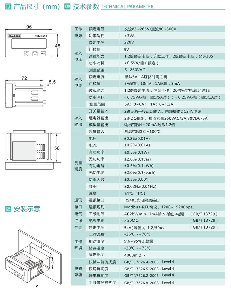 PUMG510單相智能電力儀表功能特點(diǎn)