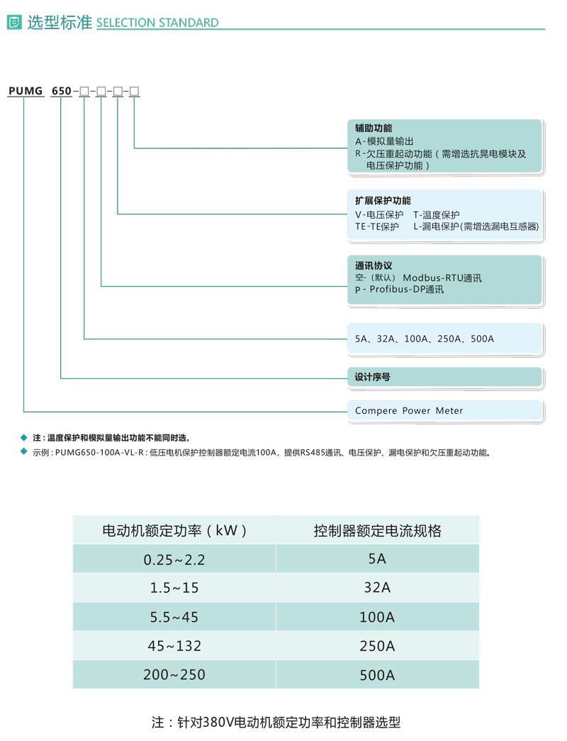 PUMG650系列低壓電動機保護控制器適用于額定電壓380V至660V、額定電流5A至500A的控制保護回路,提供了完善的保護控制措施,基于多種總線的通訊方式可以實現(xiàn)電機的網(wǎng)絡(luò)化管理,控制器地應(yīng)用提高了設(shè)計和生產(chǎn)效率,減少了現(xiàn)場調(diào)試和維護的工作量。