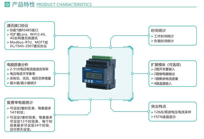 1.測(cè)量三相交流電壓、電流、四象限電能、有功/無(wú)功功率、