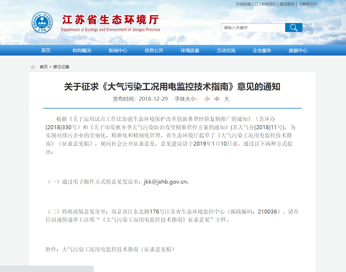 1.關(guān)于征求《大氣污染工況用電監(jiān)控技術(shù)指南》意見的通知